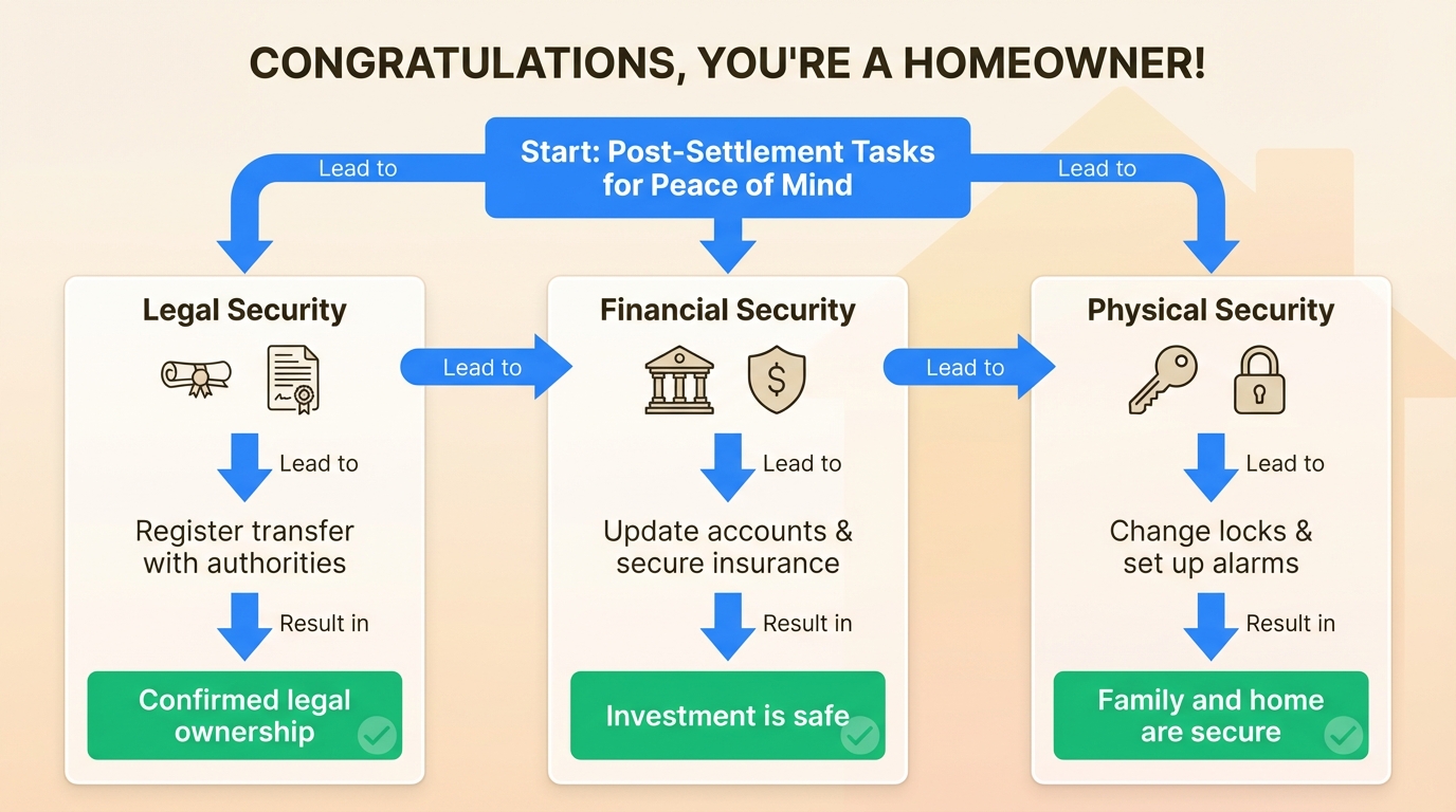 "Post-settlement tasks" might sound like more legal jargon, but it's really just the stuff you do right after the property officially becomes yours. It's a mix of legal, admin, and security actions that put the finishing touches on your purchase.