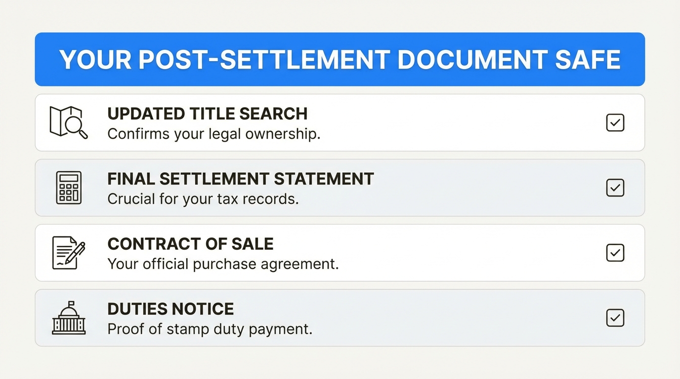 After settlement, your conveyancer or solicitor will send you a stack of important documents. It is important to understand these documents and store them in a secure location. These papers are the official proof of your ownership and the financial details of your purchase. You'll need them for things like taxes or if you decide to sell in the future.