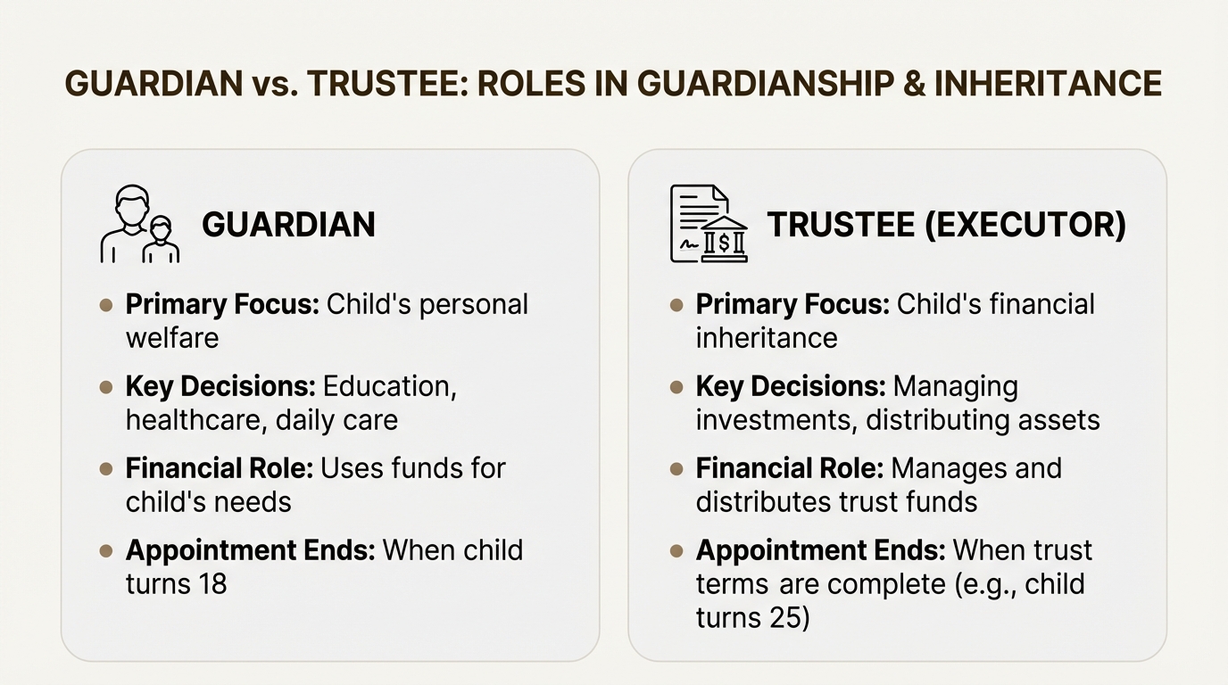 Appointing a guardian handles your child's personal care. But what about their financial future? That's where inheritance comes in, and it's looked after by someone in a different role: the trustee.