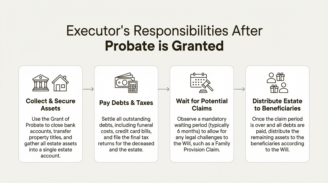 - Wait for Claims: This is a big one. In most parts of Australia, it's strongly recommended that an executor waits at least six months from the date probate was granted before handing out any assets. Legal experts in both Queensland and Victoria point out that this period gives anyone who wants to legally challenge the Will (known as a Family Provision Claim) a window to do so.
